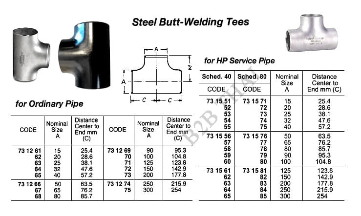 IMPA731562 STEEL BUTT-WELDING TEE, H.P. SCH-40, 150 A