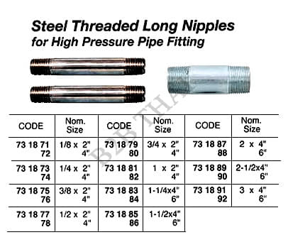 IMPA731871 STEEL THREADED LONG NIPPLE, H.P. 1/8 x 2″