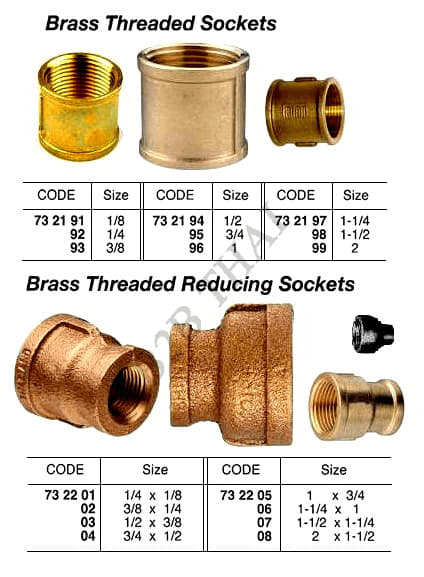 BRASS THREADED REDUCING SOCKET, 3/8 x 1/4