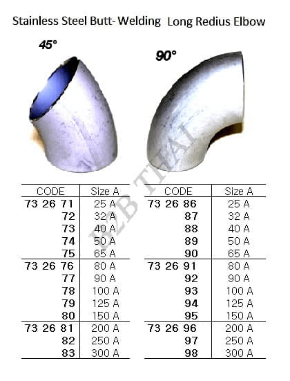 IMPA732682 ST.STEEL BUTT-WELDING LONG RADIUS ELBOW, 45 DEG, SCH-10, 250 A