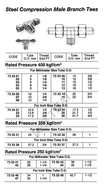 STEEL COMPRESSION MALE BRANCH TEE, 250 KG, 34.0 MM x PT 1