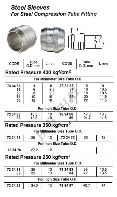 STEEL SLEEVE FOR STEEL COMPRESSION TUBE FITTING, 250 KG, 38 MM