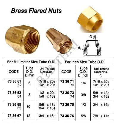 IMPA733671 BRASS FLARED NUT, 1/4″ x UNF 7/16 x 20 THREAD