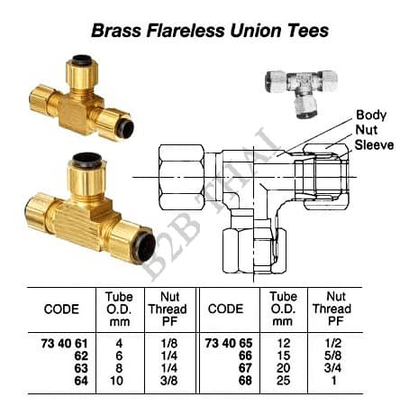 IMPA734064 BRASS FLARELESS UNION TEE THREADED, 10 MM x PF 3/8