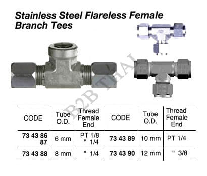 IMPA734389 ST.STEEL FLARELESS FEMALE BRANCH TEE THREADED, 10 MM x PT 1/4