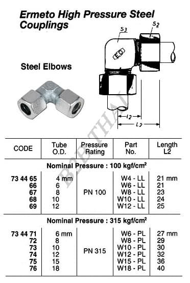 HIGH PRESSURE STEEL ELBOW, 100 KG, 8 MM, W8-LL ERMETO