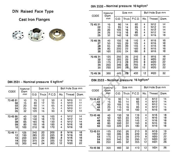 RAISED FACE TYPE CAST IRON FLANGE, DIN 2533, 16 KG, 300 MM