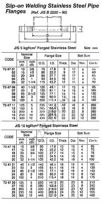 SLIP-ON WELDING ST.STEEL FLANGE, JIS B 2220, 5KG – 40 MM