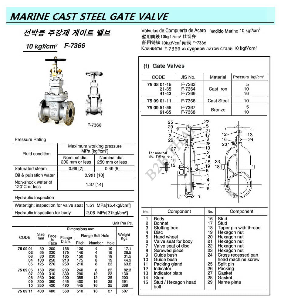 MARINE CAST STEEL GATE VALVE, FLANGE END, JIS F7366, 10KGF/CM2, 400 MM