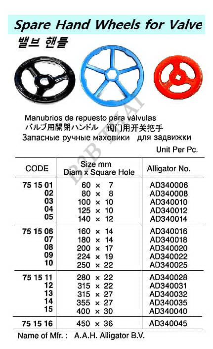 IMPA751502 SPARE HAND WHEEL FOR VLAVE, OD x SQUARE HOLE: 80 x 8