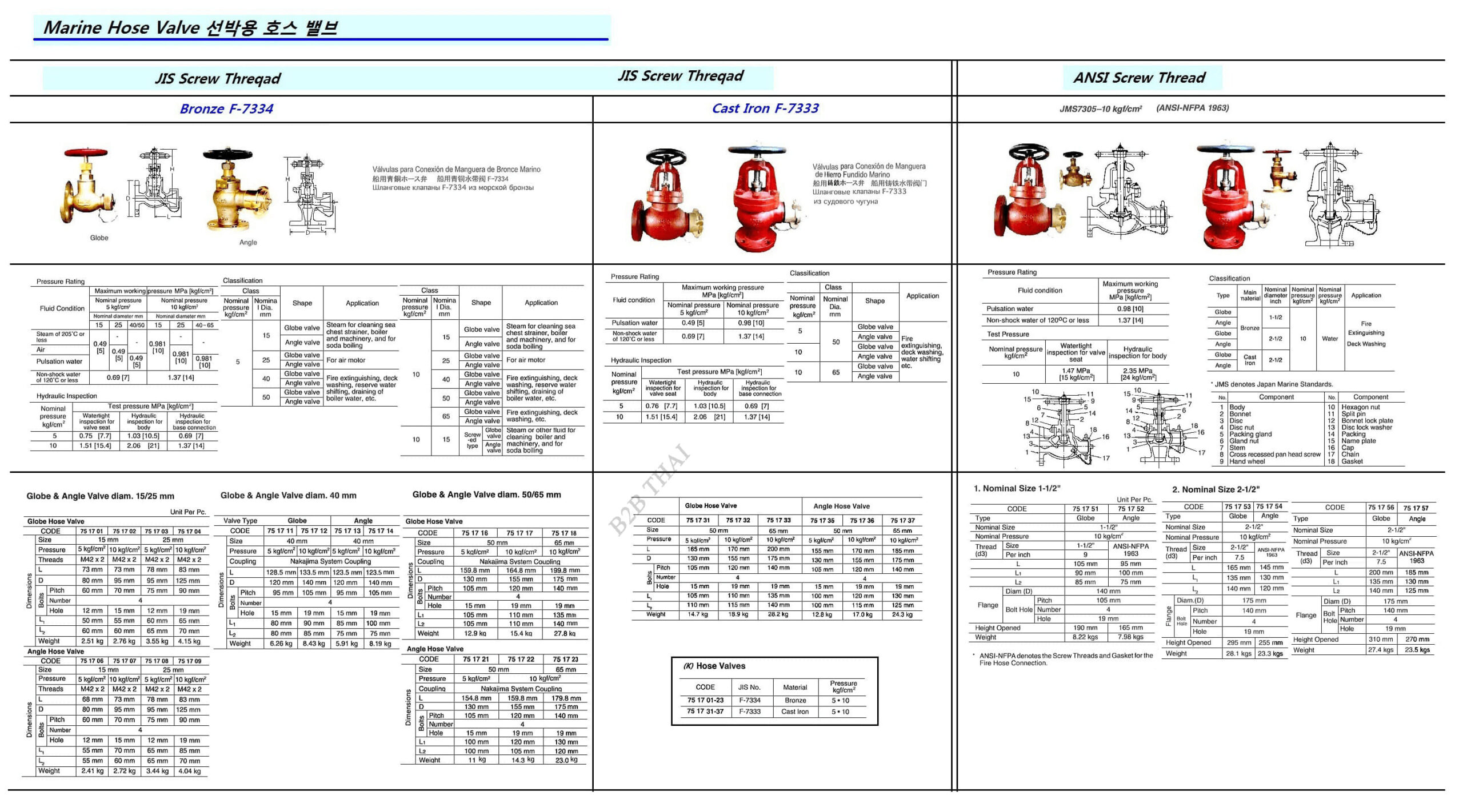 MARINE CAST IRON ANGLE HOSE VALVE, FLANGE+ ANSI NFPA SCREW THREAD END, JIS JMS7305, 10KGF/CM2. 2-1/2″
