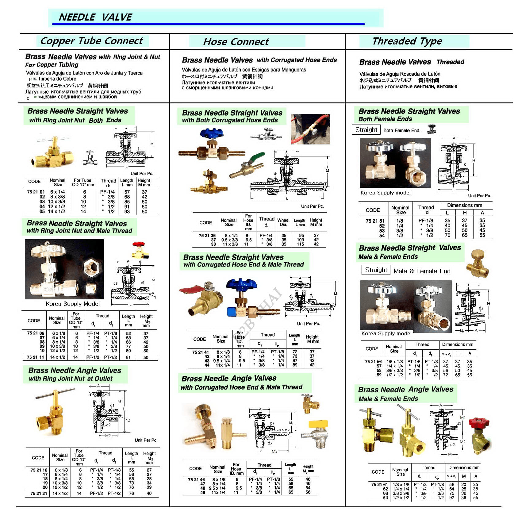 IMPA752158 BRASS NEEDLE STRAIGHT VALVE, MALE + FEMALE END, 3/8 x 3/8