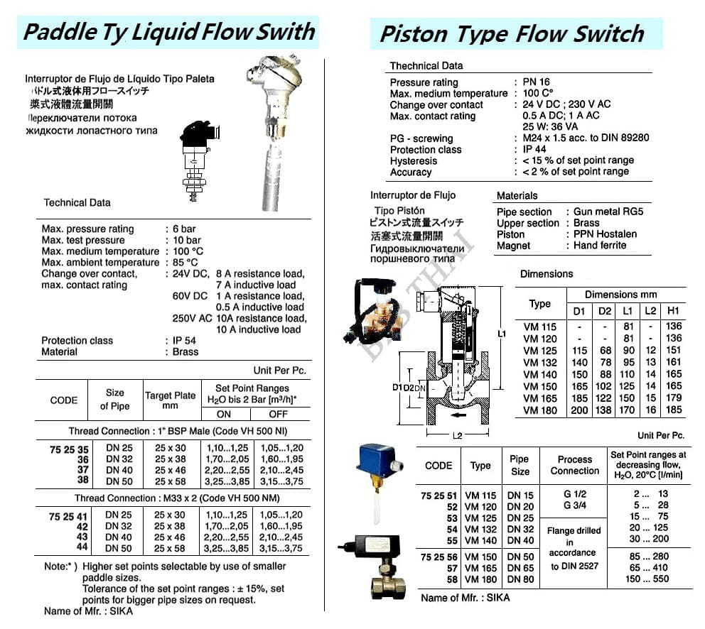 PISTON TY FLOW SWITCHES, VM 150, DN 50, SIKA