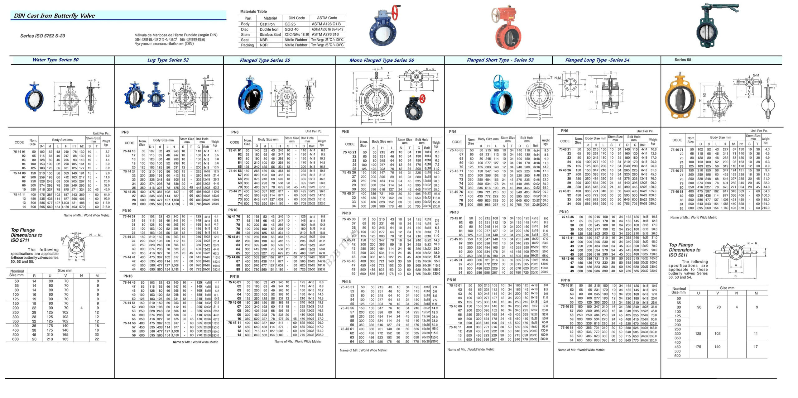 BUTTERFLY VALVE (DIN), CAST IRON, ISO 5752 S-20, LUG TY, SERIES 52, PN10, SIZE 300