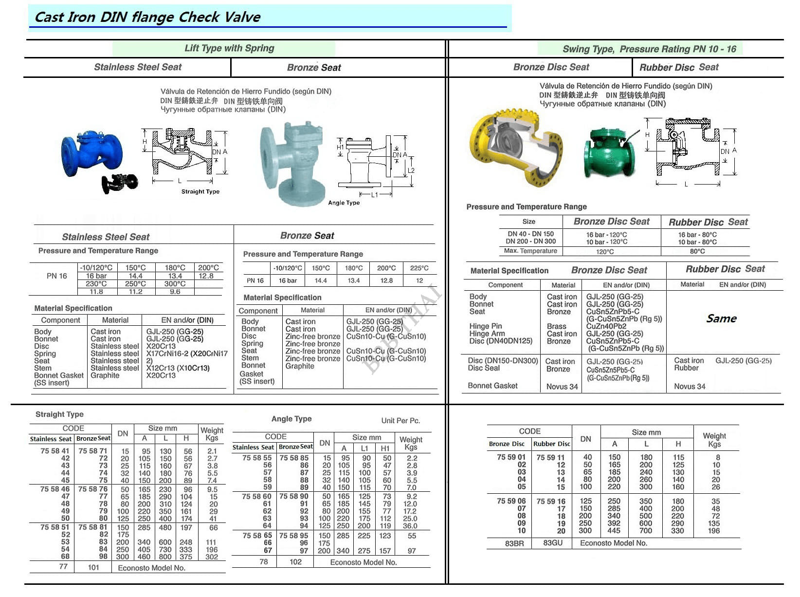 CHECK VALVE (DIN), CAST IRON, FLANGED, BRONZE SEAT, SWING TY, STRAIGHT, SIZE DN 250
