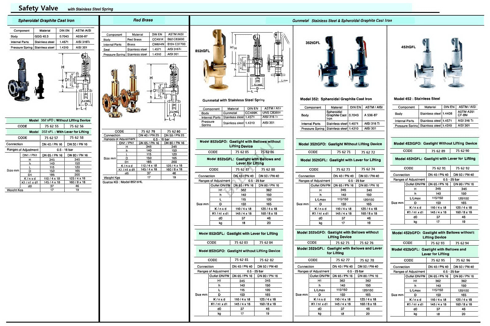 SAFETY VALVE, SPHEROIDAL GRAPHITE CAST IRON WITH ST.STEEL SPRING, MODEL 352tFL, GASTIGHT WITH LEVER FOR LIFTING, DN 50/ PN 16