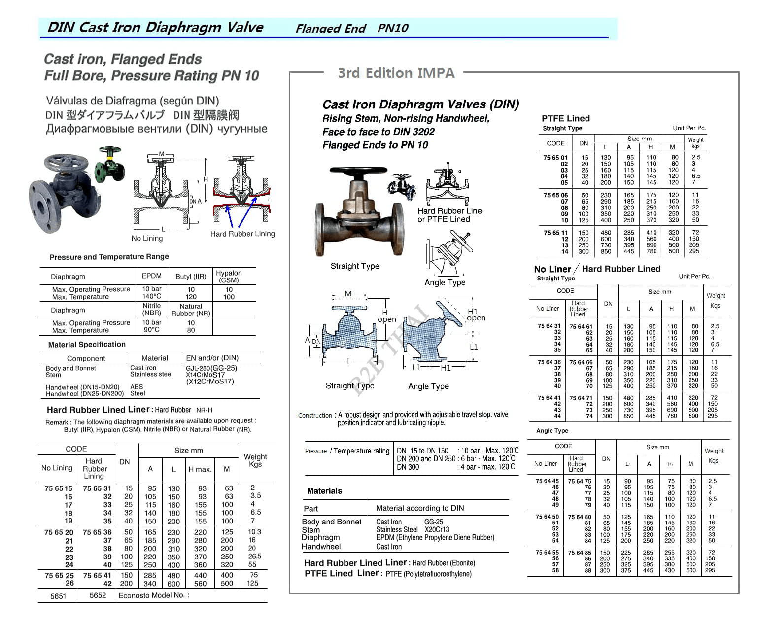 IMPA756431 DIAPHRAGM VALVE (DIN), CAST IRON, FLANGED END, NON RISING HANDWHEEL, STRAIGHT, DN 15