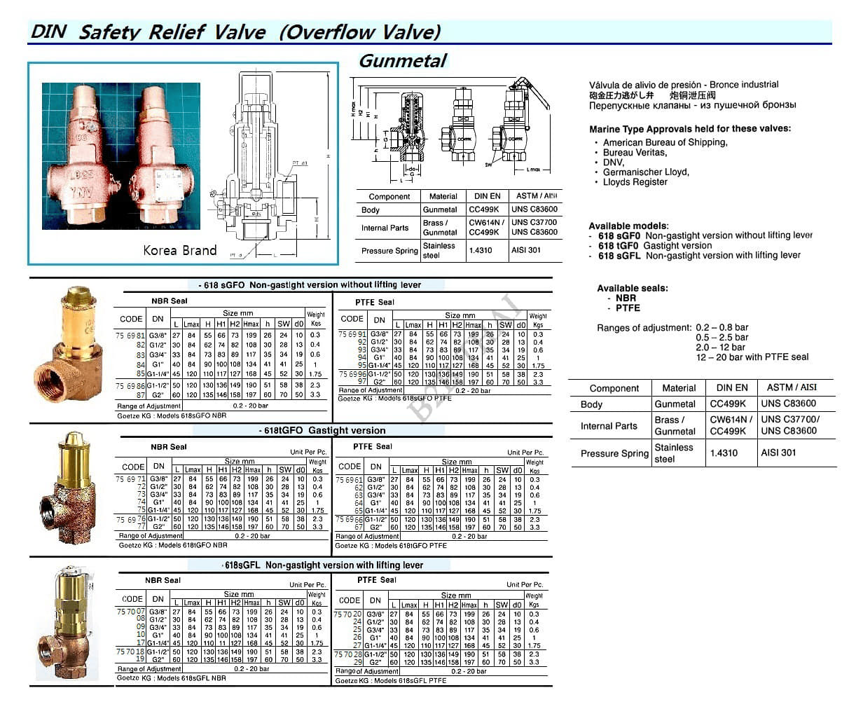 PRESS RELIEF VALVE (DIN), GUNMETAL, THREADED NUT END, NON-GASTIGHT VER. W/OUT LIFTING LEVER, 618sGFO, PTFE SEAL, DN G3/8″