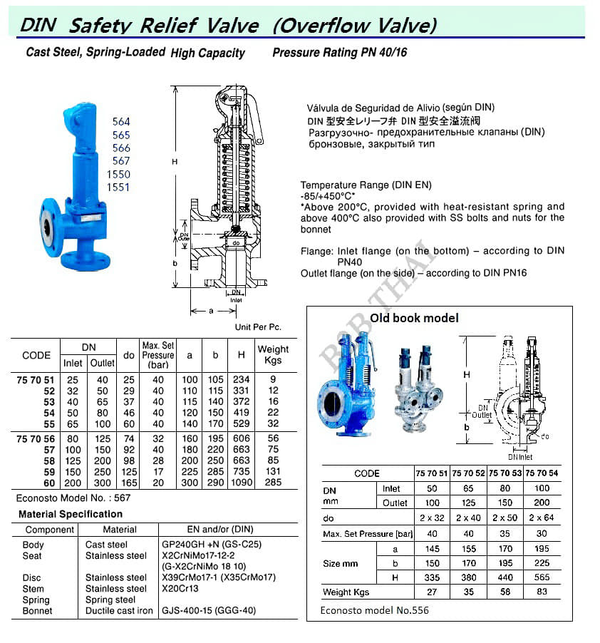IMPA757055 SAFETY VALVE (DIN), CAST STEEL, DIN FLANGE, SPRING-LOADED, ANGLE TY, ECONOSTO MODEL 567, IN DN 65, OUT DN 100
