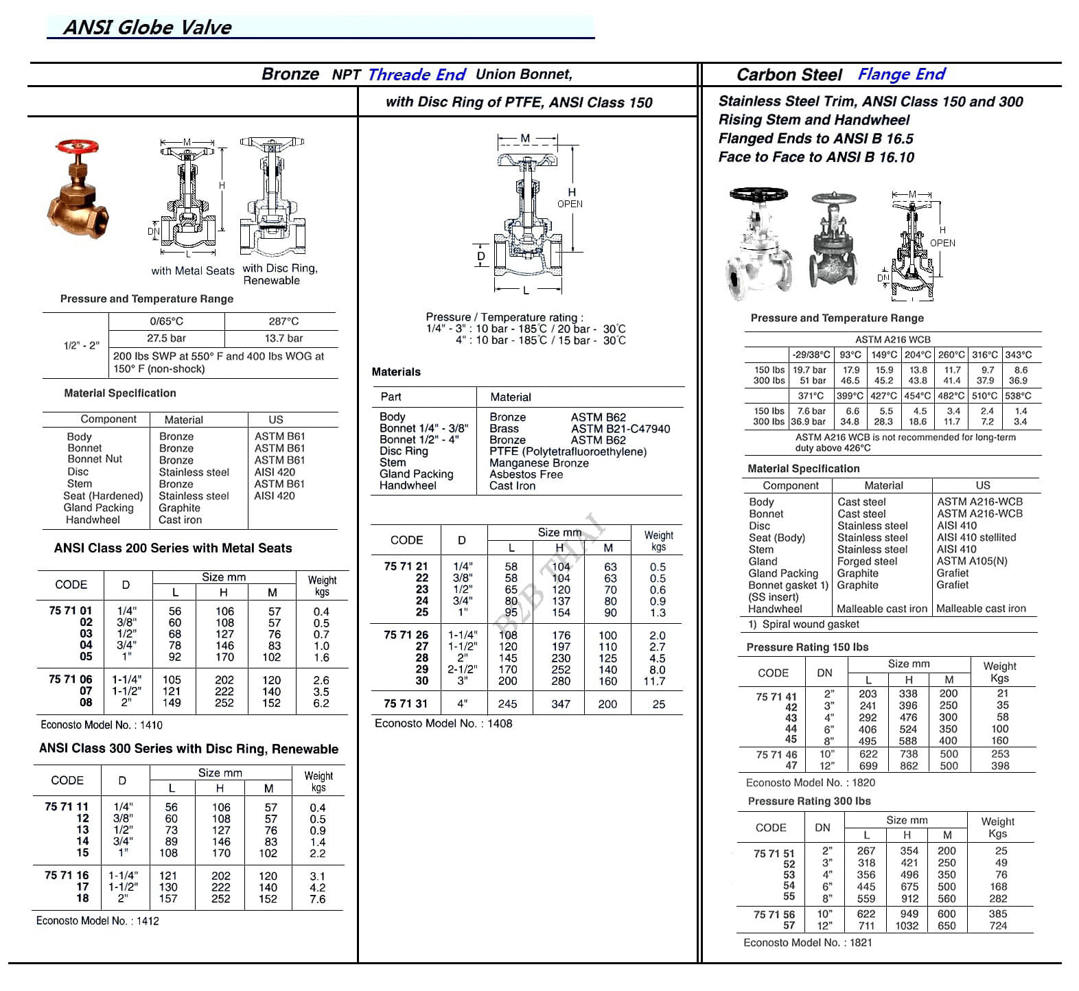 GLOBE VALVE (ANSI), CAST STEEL, ASME FLANGE, 300 LBS, SIZE DN 8″