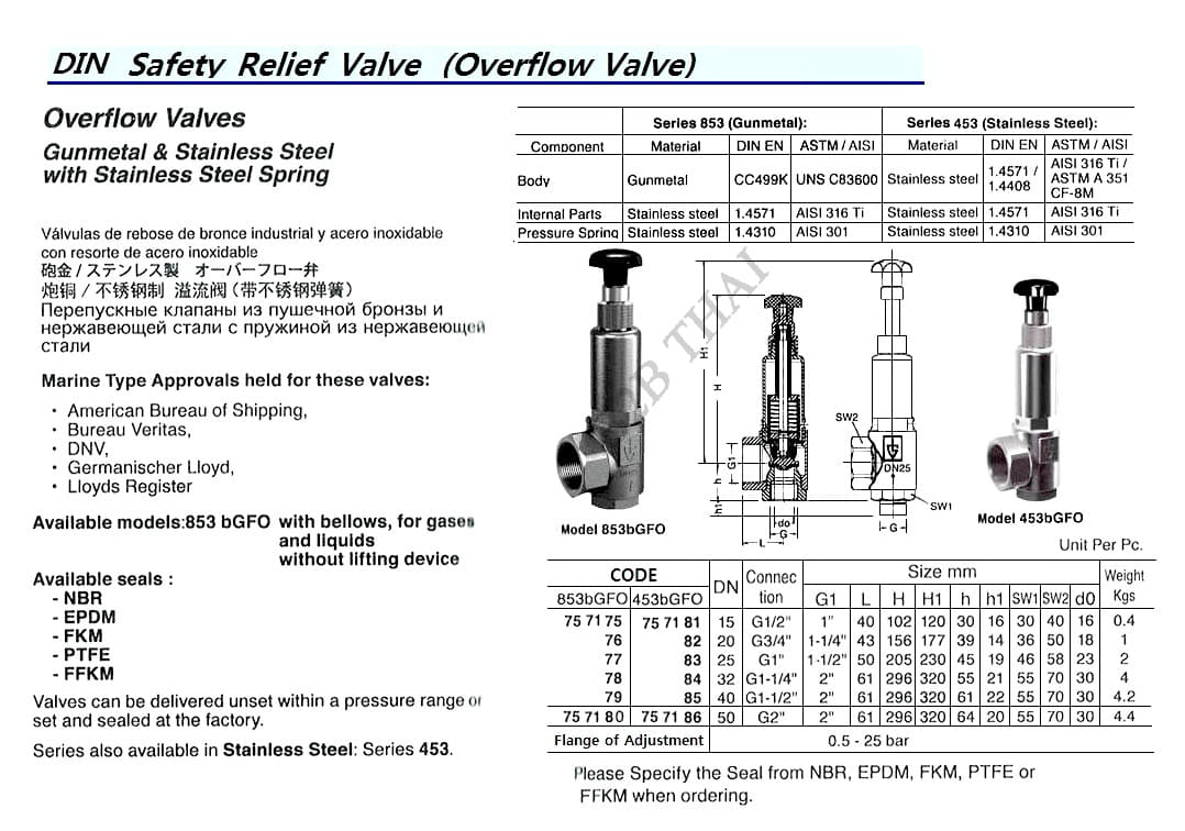 OVERFLOW VALVE (DIN), GUNMETAL, BOTH THREADED END, WITH ST.STEEL SPRING LIFTING DEVICE, 853bGFO, DN G1″
