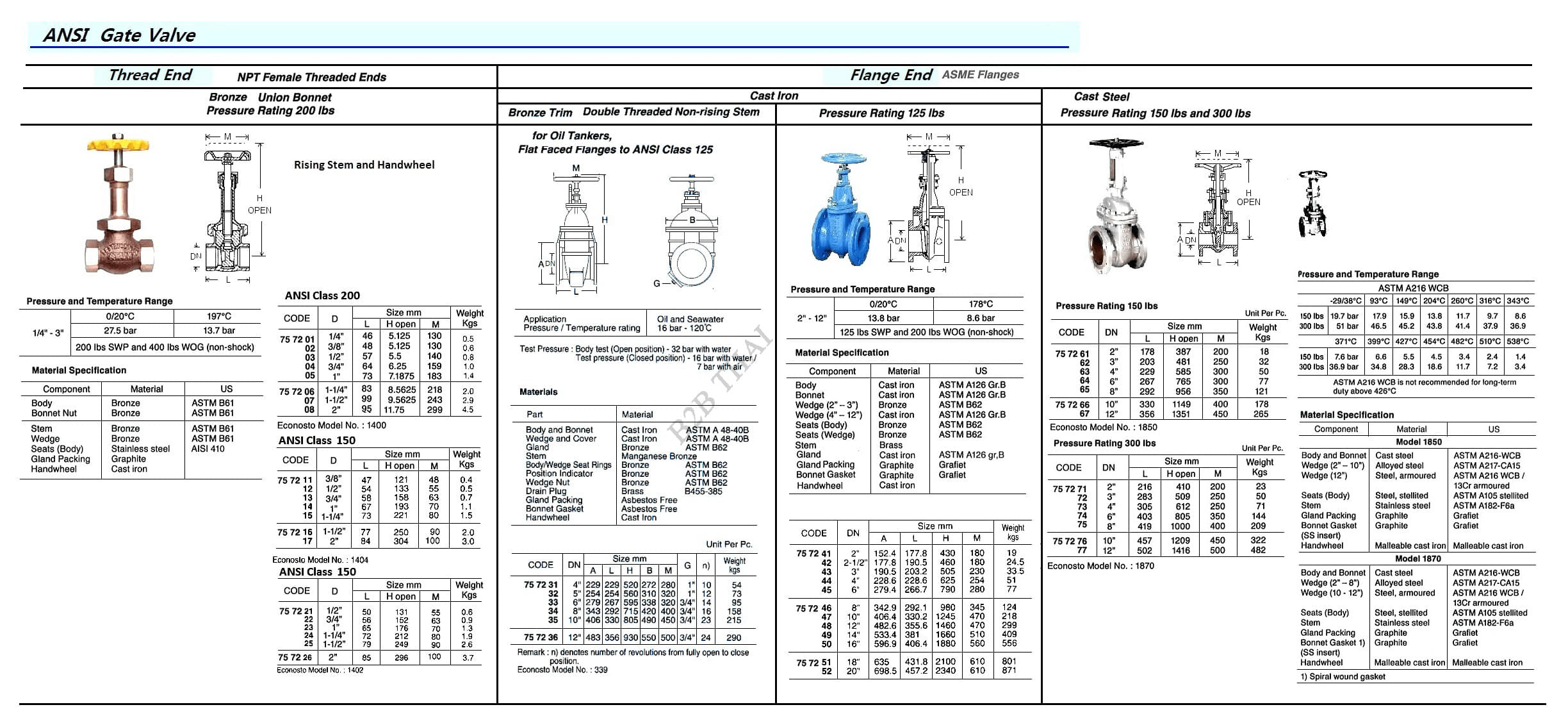GATE VALVE (ANSI), CAST IRON, ASME FLAANGE, 125 LBS, DN 20″