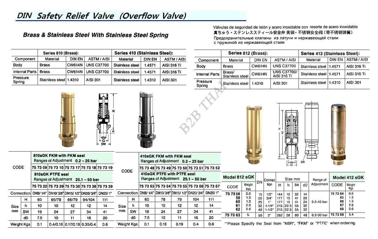 SAFETY VALVE, BRASS, 810sGK PTFE SEAL, CONNET DN20 / 3/4″ 25.1~50 BAR