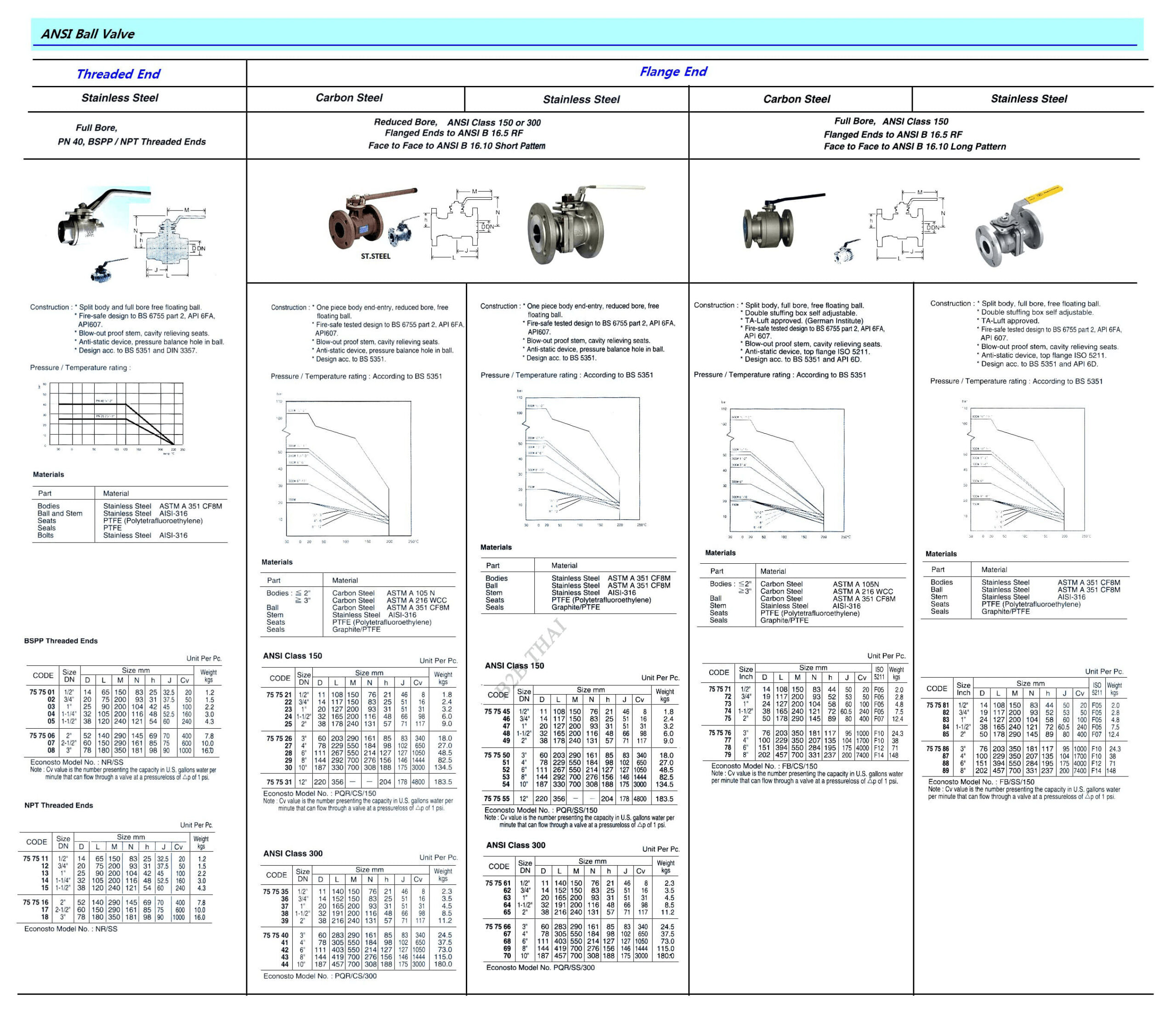 BALL VALVE (ANSI), ST.STEEL, BSPP THREADED ENDS, FULL BORE, PN 40, SIZE DN 2-1/2″