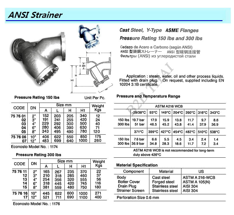 STRAINER (ANSI), CAST STEEL, Y-TY, ASME FLANGE, 300 LBS, SIZE DN 2″