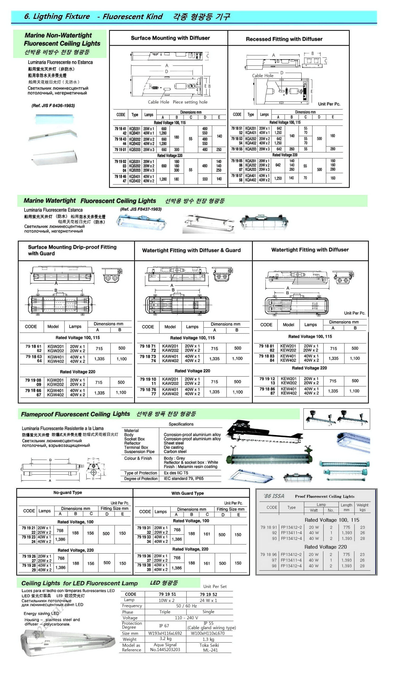 IMPA791897 EXPLOSION PROOF FLUORESCENT CEILING LIGHT, 40 W SINGLE AC220V