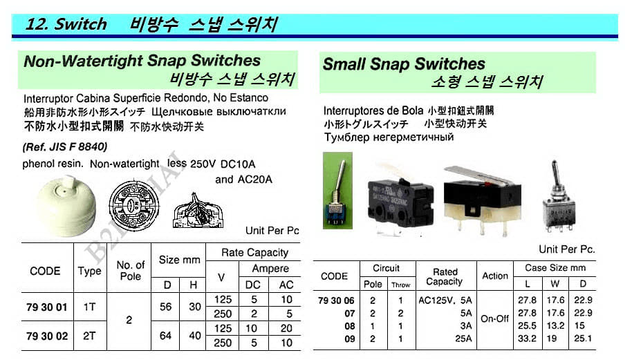 IMPA793001 SNAP SWITCH, NON-WATERTIGHT TYPE 1T 2 POLE 56 MM DIAM
