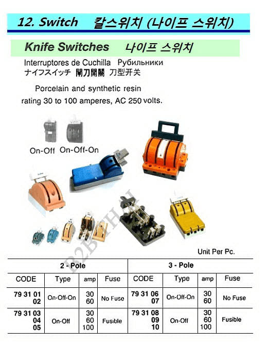IMPA793109 KNIFE SWITCH, ON-OFF, 3-POLE 250V 60 A