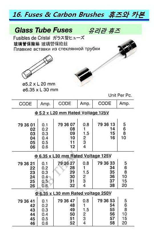 IMPA793605 GLASS TUBE FUSE, 125V 0.5 AMP DIA 5.2 x L20MM