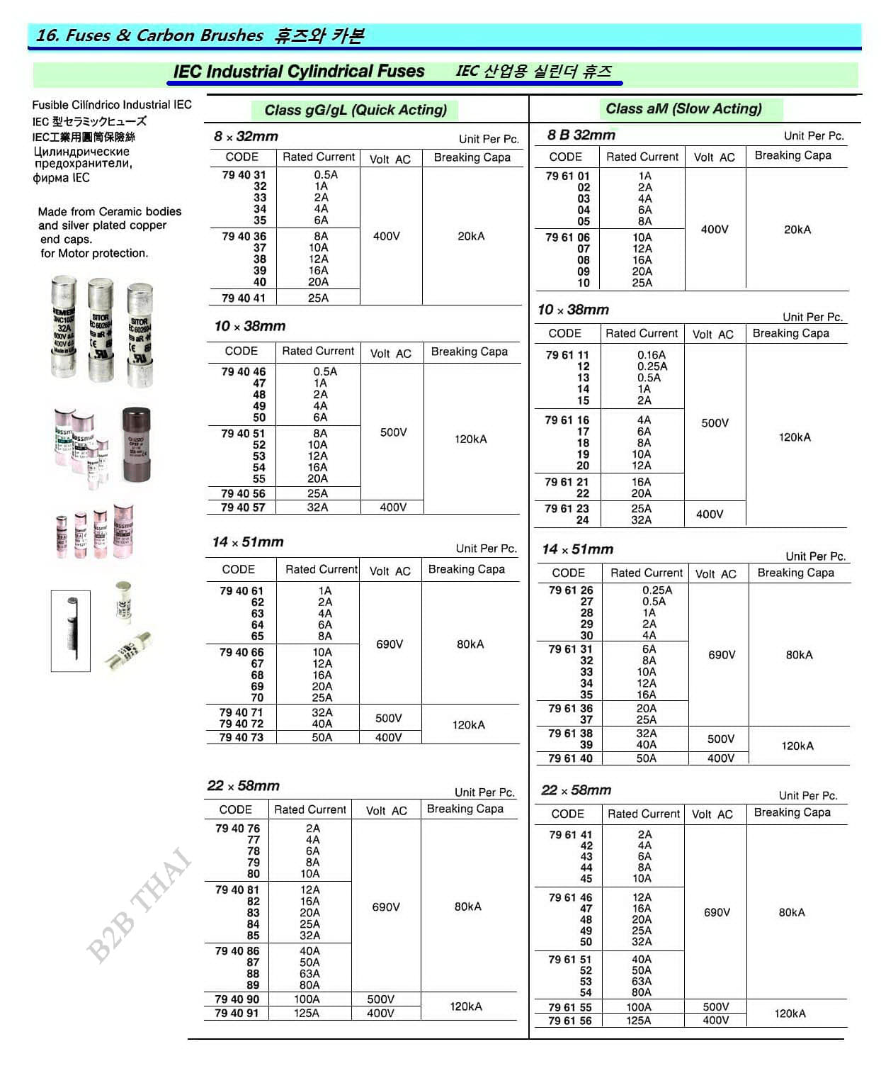 IEC INDUSTRIAL CYLINDERICAL FUSE, CLASS Gg/gL, QUICL ACTING, 22×58 MM, 400V, 125 A