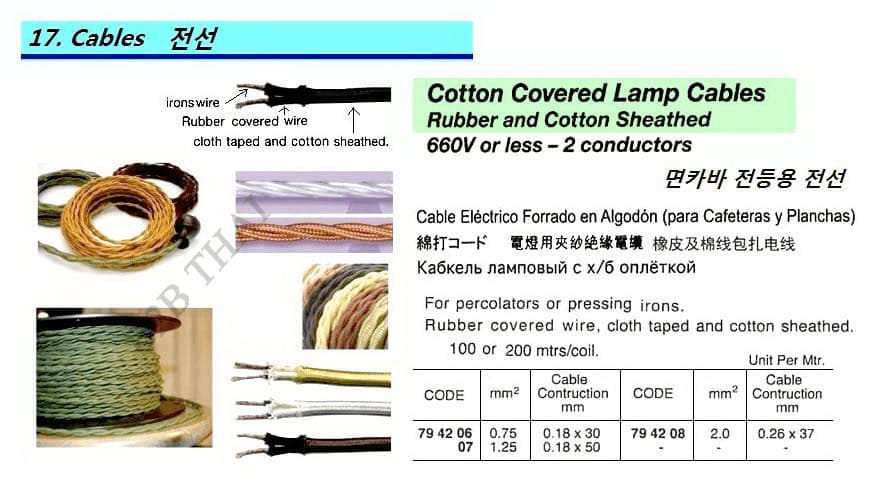 IMPA794208 COTTON COVERED LAMP CABLE, 2.0 MM/SQ x 2C