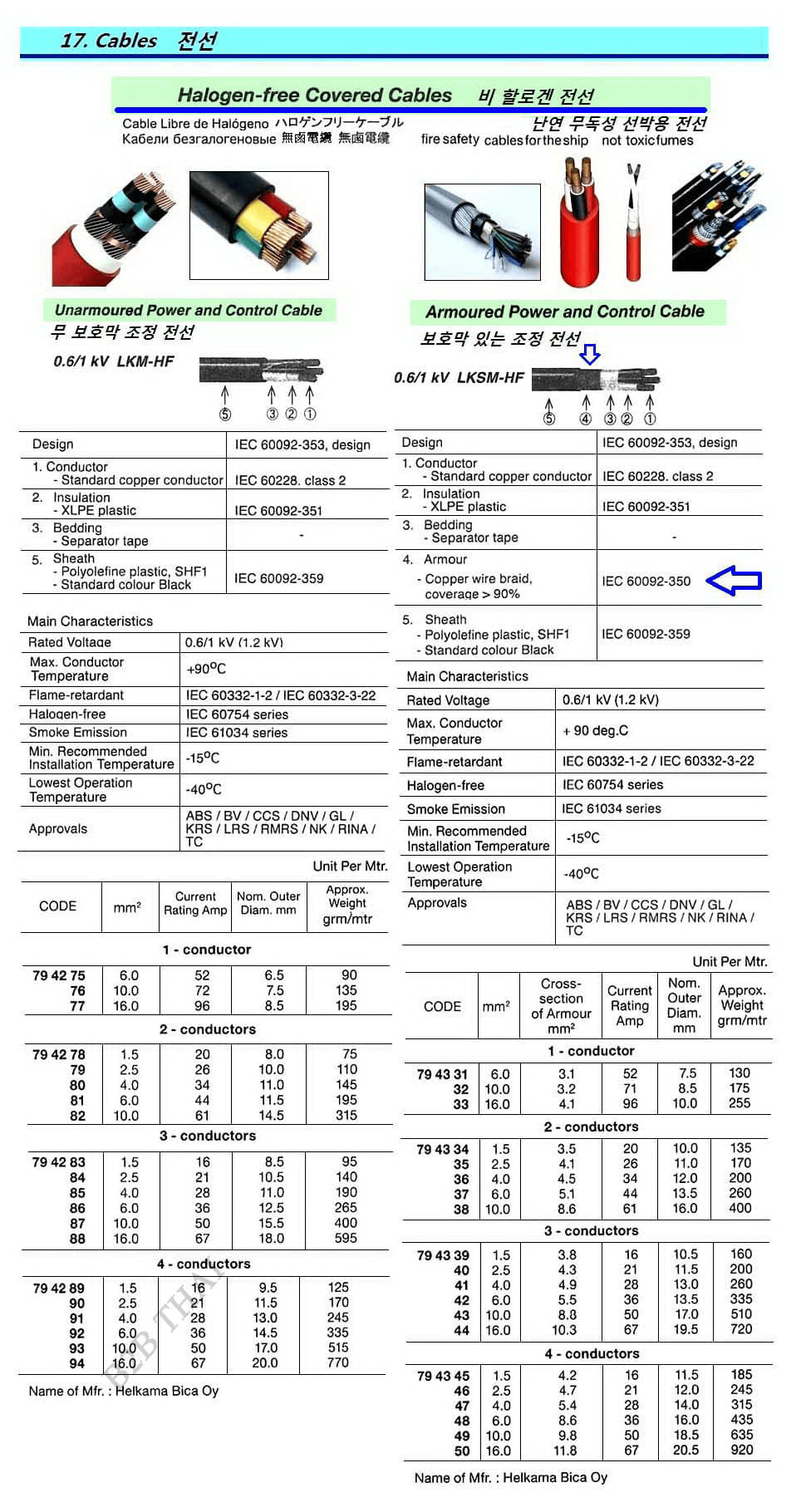 IMPA794348 HALOGEN-FREE COVERED CABLE, ARMOURED POWER AND CONTROL CABLE, 0.6/1KV, LKSM-HF, 4C 6.0 MM