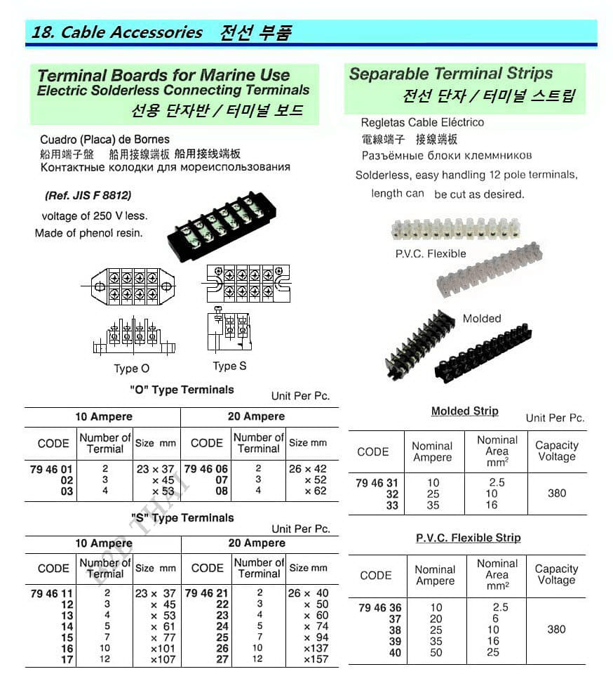 IMPA794623 TERMINAL BOARD, S-TYPE 20 AMP 4-TERMINAL