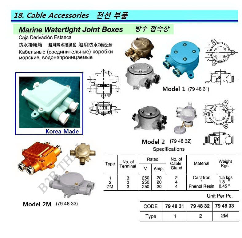 IMPA794833 JOINT BOX, WATERTIGHT PHENOL RESIN TYPE 2M 20 AMP 3-P 4-GLANDS