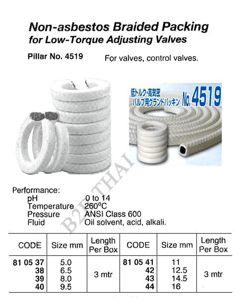 NON ASBESTOS LOW TORQ ADJUST VALVE PACKING, PILLAR NO.4519 12.5 MM x 3 MTR