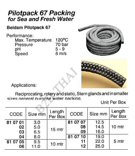 IMPA810712 BELDAM PILOTPACK 67 PACKING FOR SEA/FRESH WATER, 25 MM x 5 MTR