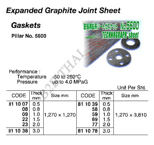 EXPANDED GRAPHTE JOINT SHEET GASKET, PILLAR NO.5600, 0.5x1270x3810 MM
