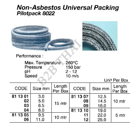 NON-ASBESTOS UNIVERSAL PACKING,PILOTPACK 8022, 22 MM x 5 MTR