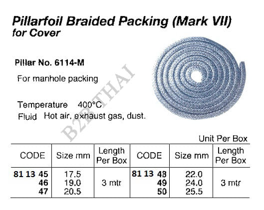 PILLARFOIL BRAIDED PACKING MARK VII, PILLAR NO.6114-M, 24 MM 3 MTR/BOX