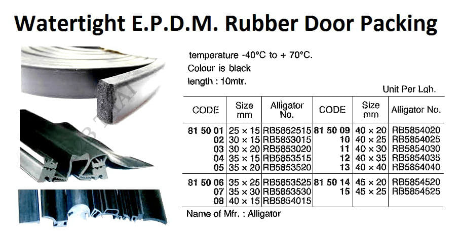 WATERTIGHT EPDM RUBBER DOOR PACKING, 45 x 25 mm, 10 Mtr/PC