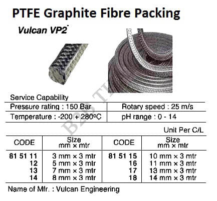 PTFE GRAPHITE FIBRE PACKING, VULCAN VP2, 7 MM x 3 MTR