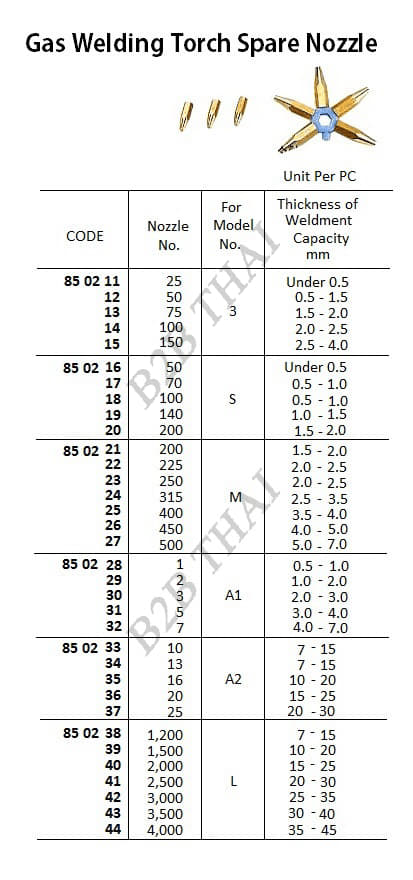 SPARE NOZZLE FOR NO.A1 GAS WELDING TORCH, NO.3 ( 6KIND/SET )