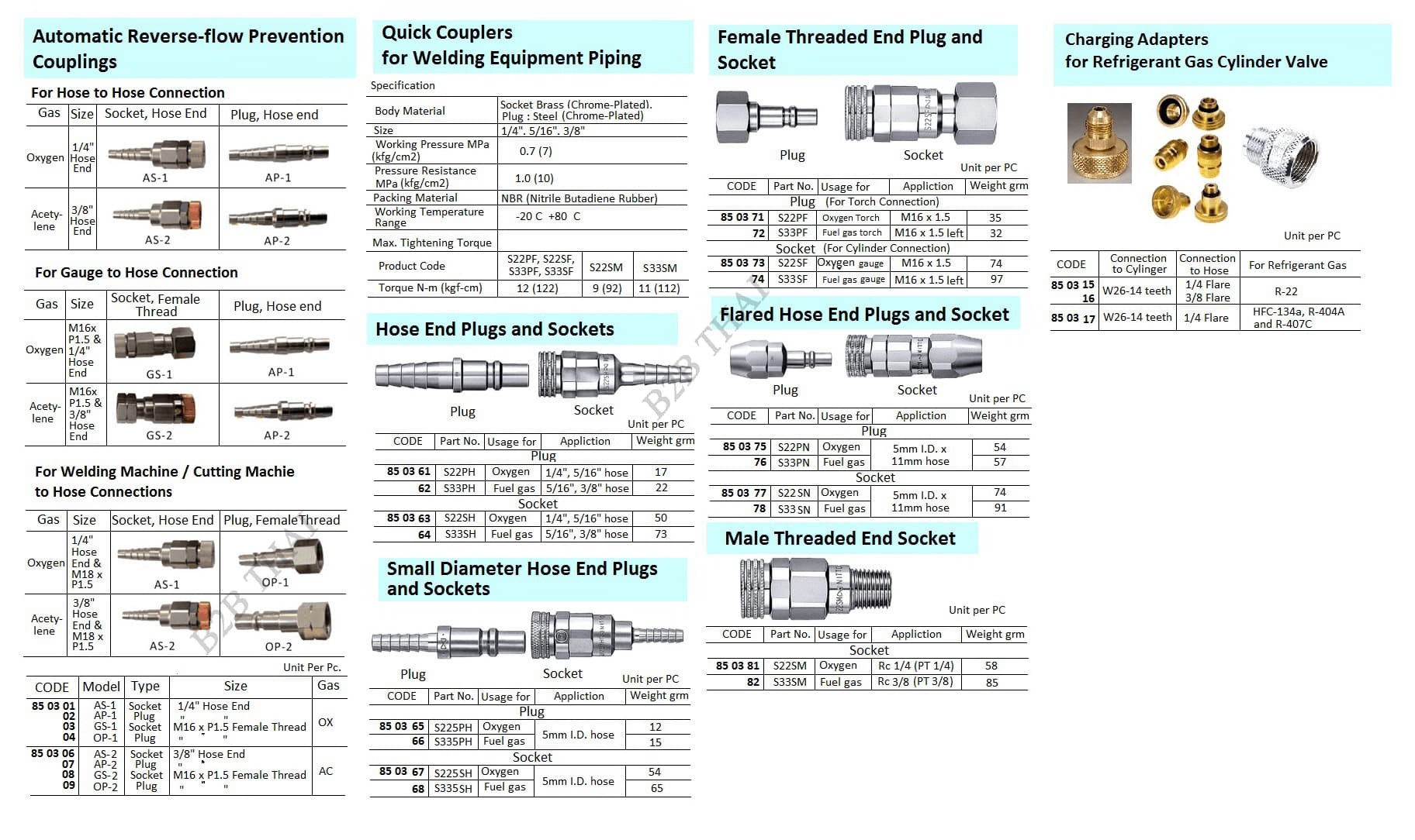 WELDING EQUIP QUICK COUPLER. HOSE END SOCKET FOR FUEL GAS 5/16″, 3/8″ HOSE END, S33SH
