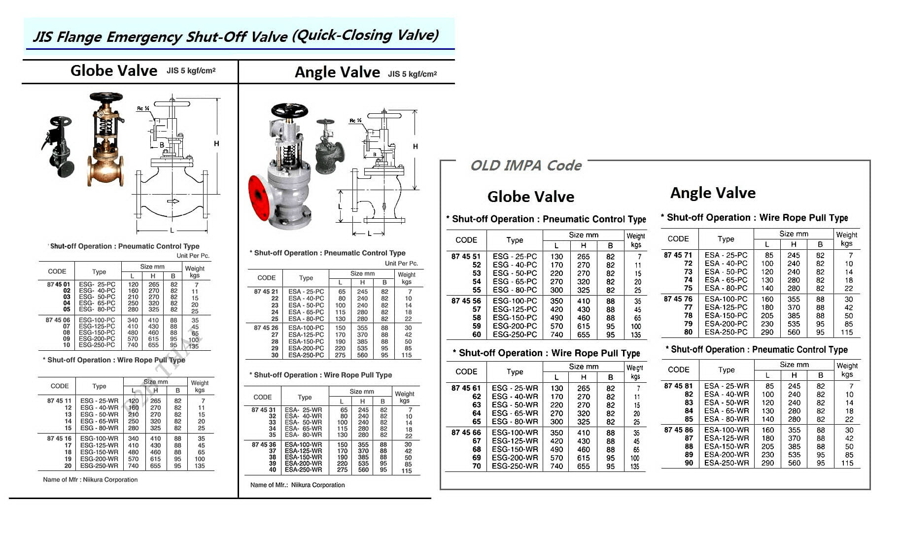IMPA874517 EMERGENCY SHUT-OFF GLOVE VALVE, CAST IRON, FLANGE END, WIRE ROPE PULL TY, JIS 5KGF/CM2, ESG-125-WR, NIIKURA CO.