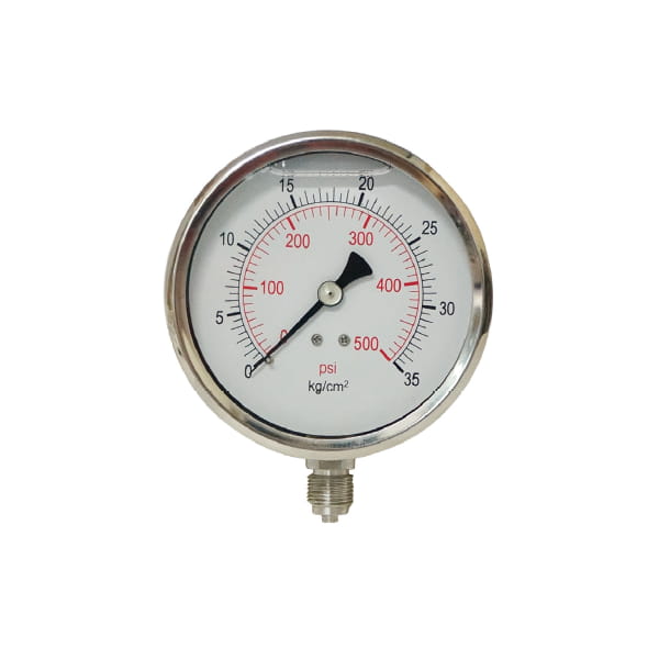 Pressure Gauge Stainless Lower Mount 4″ 0 to + 600kgf/cm2 Lower mount Stainless